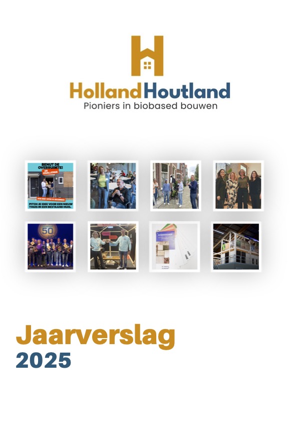 Holland Houtland vierde in 2025 haar 5 jarig bestaan. We krijgen best wel vaak de vraag: wat doen jullie allemaal…? En met dit jaarverslag bieden we een inkijkje in de keuken. Holland Houtland was een “social impact VOF” en in 2025 zijn wij een social impact BV geworden. Met vaste medewerkers en een vast team van ZZP-ers en bedrijven hebben we onze activiteiten fors kunnen uitbreiden, zijn we nieuwe samenwerkingen aangegaan en is onze rol binnen de circulaire en biobased bouwketen verder versterkt.