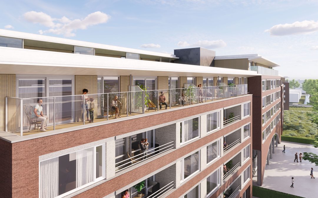 Dit beeld is van de Klapwiek in Rotterdam. Een optopproject van de Stichting Ouderenhuisvesting Rotterdam. En is inmiddels uitgevoerd door Dura Vermeer.
